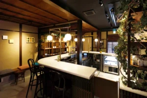 花街・宮川町に佇むこの施設は、築100年以上の元お茶屋であった町家を再生したバーラウンジとコワーキングスペースを併設した複合施設です。